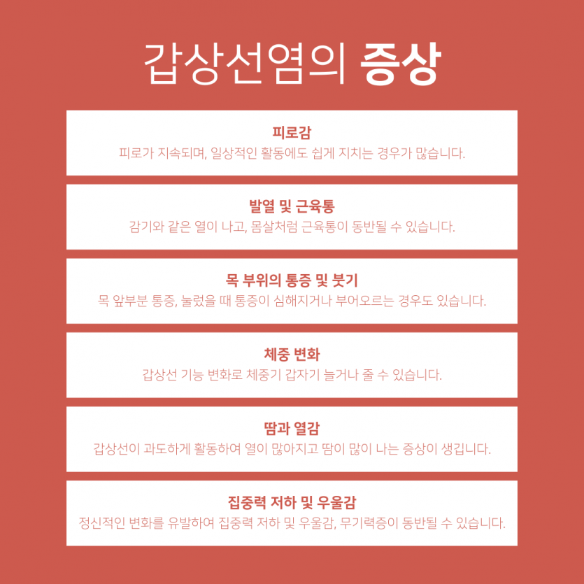 목록 갑상선염, 감기로 오해하기 쉬운 이유 ✔︎ 24-11-12 00:05 / amiu 본문 갑상선염 증상이 나타나면 흔히 감기나 다른 일상적인 건강 문제와 혼동되기 쉽습니다.하지만 그 증상이 지속되거나 갑상선 부위에 변화가 느껴진다면갑상선염을 의심하고 외과는 내원하여 갑상선 검진을 받아보는 것이 중요합니다.특히 여성이라면 갑상선 질환에 더 취약하기 때문에갑상선염에 대한 주의깊은 관찰이 필요한데요.오늘은 갑상선염의 증상에 대해서 자세히 알아보도록 하겠습니다. 이전글2030도 안심할 수 없어요. '젊은 유방암' 24.11.18 다음글유방암 증상이 없어도 유방검진을 받아야 하는 이유 ♥︎ 24.11.06 댓글 0 댓글목록 등록된 댓글이 없습니다.