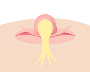 유두를 끌어당기는 섬유 조직을 절단합니다.